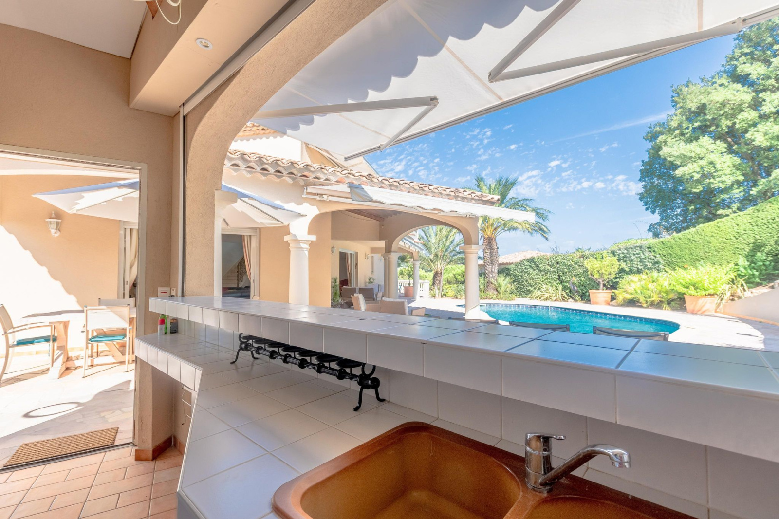 Villa dotée d'une piscine chauffée avec un jardin verdoyant et une cuisine d'été , double garage, buanderie, salle de jeux, cave. Toutes ces belles et precieuses prestations invitent à profiter de vacances ensoleillées ou d'y vivre à l'année en famille réunie.
