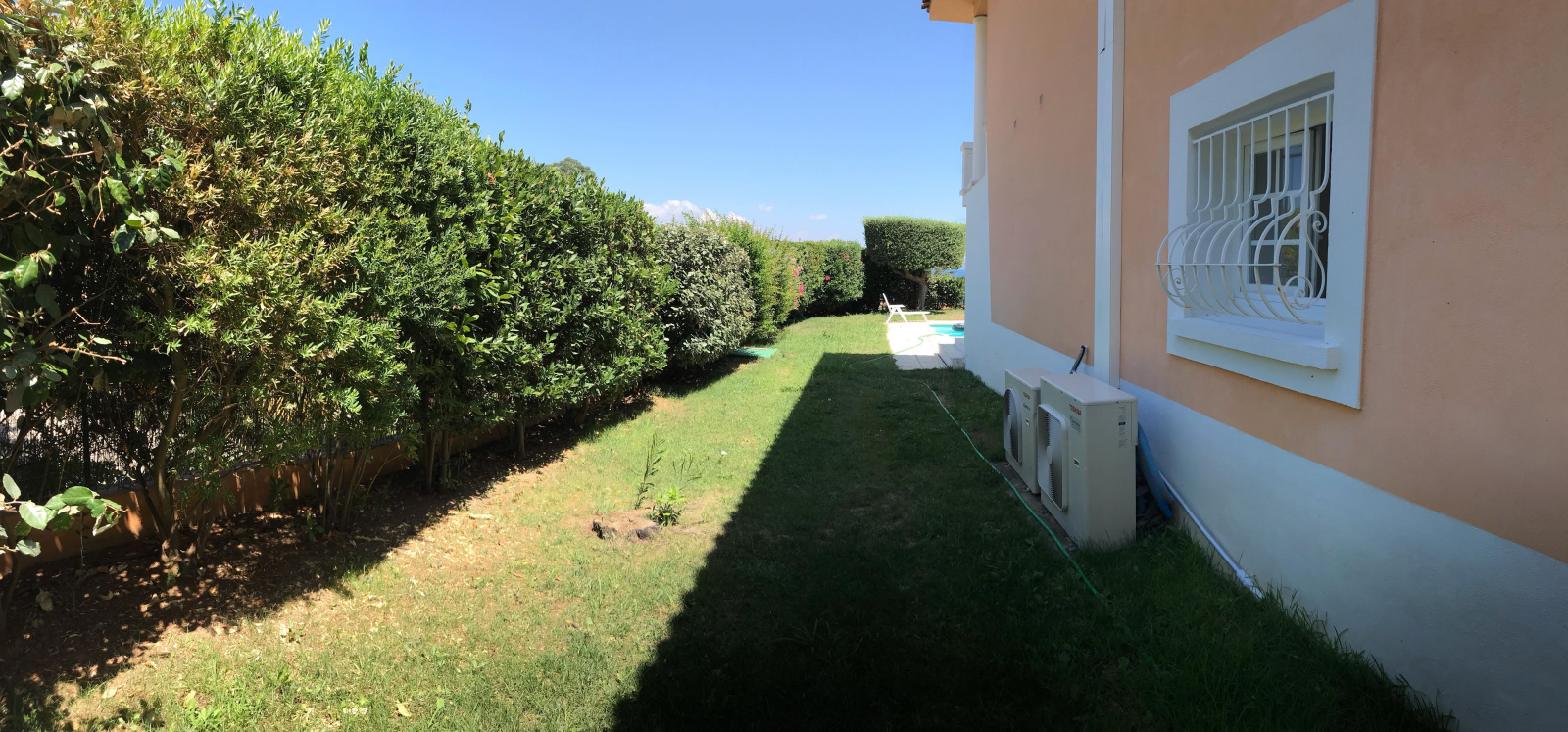 Le terrain dispose d’une piscine individuelle au chlore, de la verdure tout autour de la villa, des plantations (fleurs, oliviers etc.), un arrosage automatique, un portail électrique avec vidéophone.
