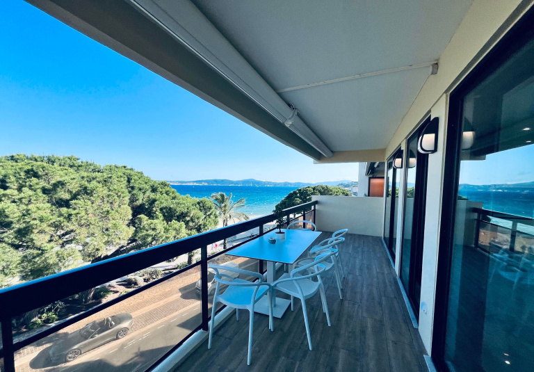 Dans le plein centre-ville de Sainte-Maxime, appartement d’environ, 75m2 composé de deux chambres, deux salles d’eau avec douche, deux WC, un grand salon salle à manger ouvert sur une très belle cuisine américaine. Trois terrasses au total permettant une surface globale de 32m2 d’extérieur. L’appartement possède une vue panoramique sur la mer et sur les plages de Sainte-Maxime. A seulement 20mètres des plages, dans le plein centre et à proximité de toutes les commodités. Climatisation dans toutes les pièces, internet, ascenseur dans la résidence et parking sécurisée en sous-sol.