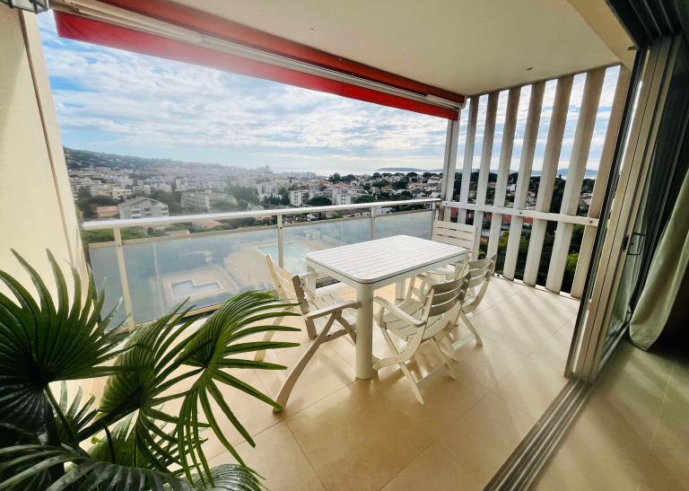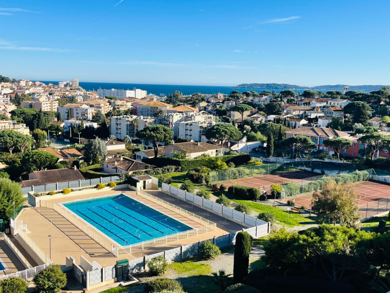 A seulement 10min à pied des plages de Sainte-Maxime, appartement d'environ 60m2 au 5ème étage d'une résidence sécurisée avec piscine et tennis. L'appartement dispose de deux chambres, un WC individuel, une salle de bain avec douche et baignoire, une cuisine équipée ouverte sur un beau salon avec une ouverture sur la terrasse d'environ 8m2. Magnifique vue sur la mer et sur Saint-Tropez. Une vue très agréable sur la piscine de la résidence et sur les hauteurs de Sainte-Maxime. Place de parking privée.