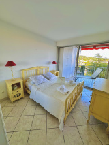 A seulement 10min à pied des plages de Sainte-Maxime, appartement d'environ 63m2 au 1ème étage d'une résidence sécurisée avec piscine et tennis. L'appartement dispose de deux chambres, un WC individuel, une salle de bain, une cuisine équipée ouverte sur un beau salon avec une ouverture sur la terrasse d'environ 18m2. Magnifique vue sur les hauteurs de Sainte-Maxime ainsi qu’un aperçu mer. Une vue très agréable sur la piscine de la résidence . Place de parking privée N°548.