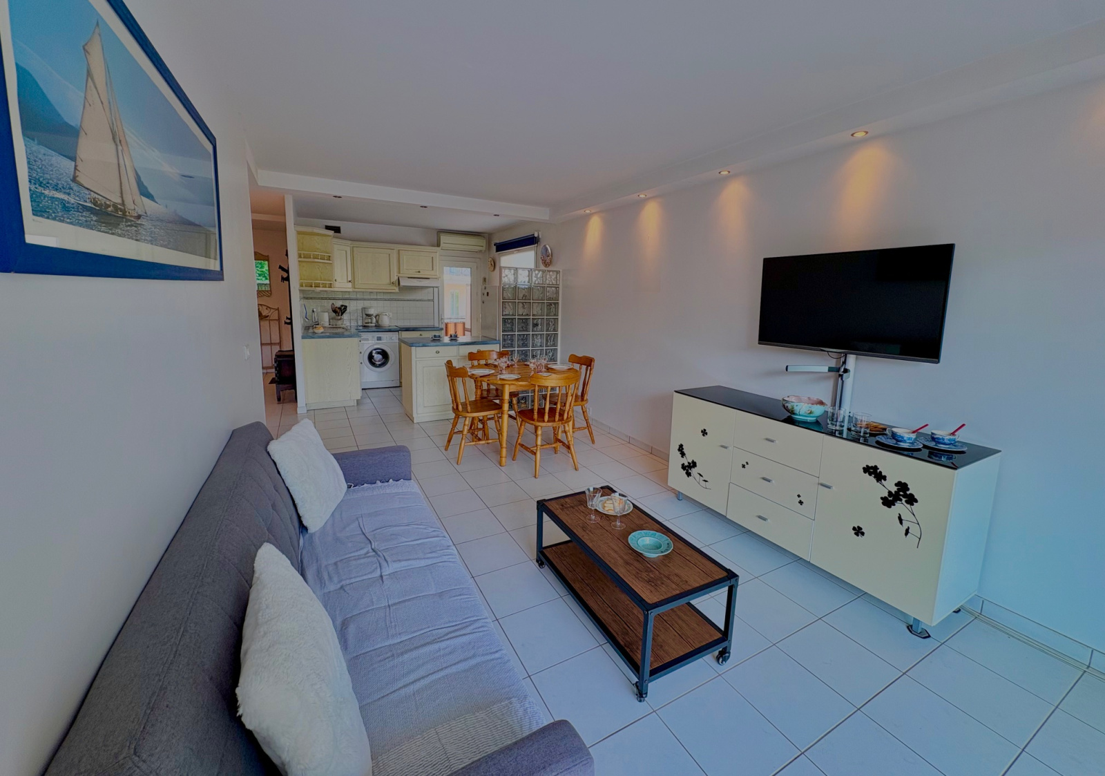 Sainte-Maxime (83120)Situé au sein d’une résidence sécurisée avec ascenseur, cet appartement de 52 m² bénéficie d’un emplacement privilégié en centre-ville, à quelques pas seulement de la mer. Il se compose d’un hall d’entrée, d’une cuisine américaine entièrement ouverte sur un vaste séjour/salle à manger, lui-même prolongé par une belle terrasse d’environ 11 m², idéale pour profiter du climat méditerranéen. La chambre, spacieuse et lumineuse, donne également accès à la terrasse. Une salle d’eau moderne avec vasque, des toilettes séparées. Le salon est équipé de la climatisation pour un confort optimal toute l’année.