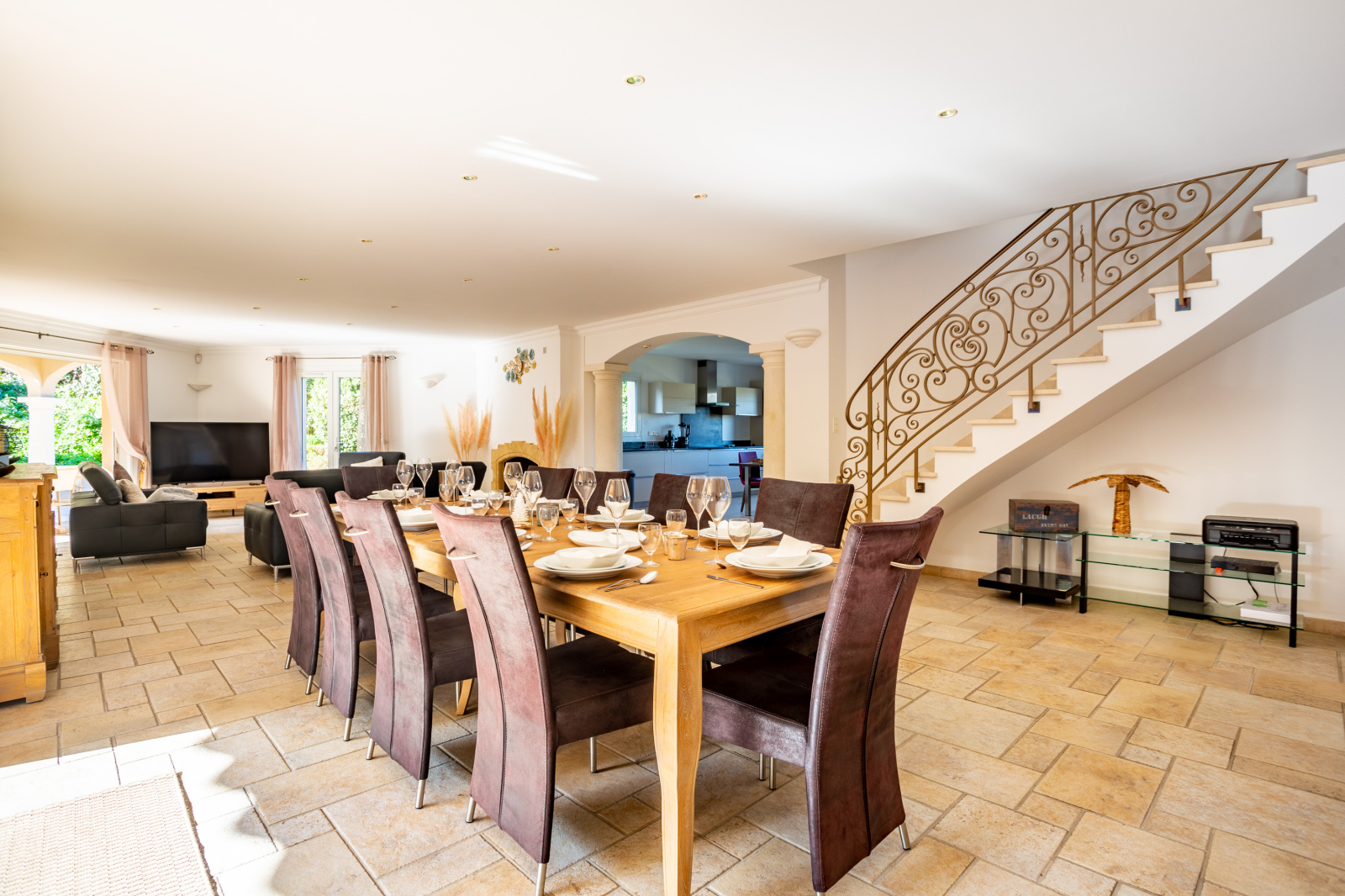 Villa dotée d'une piscine chauffée avec un jardin verdoyant et une cuisine d'été , double garage, buanderie, salle de jeux, cave. Toutes ces belles et precieuses prestations invitent à profiter de vacances ensoleillées ou d'y vivre à l'année en famille réunie.