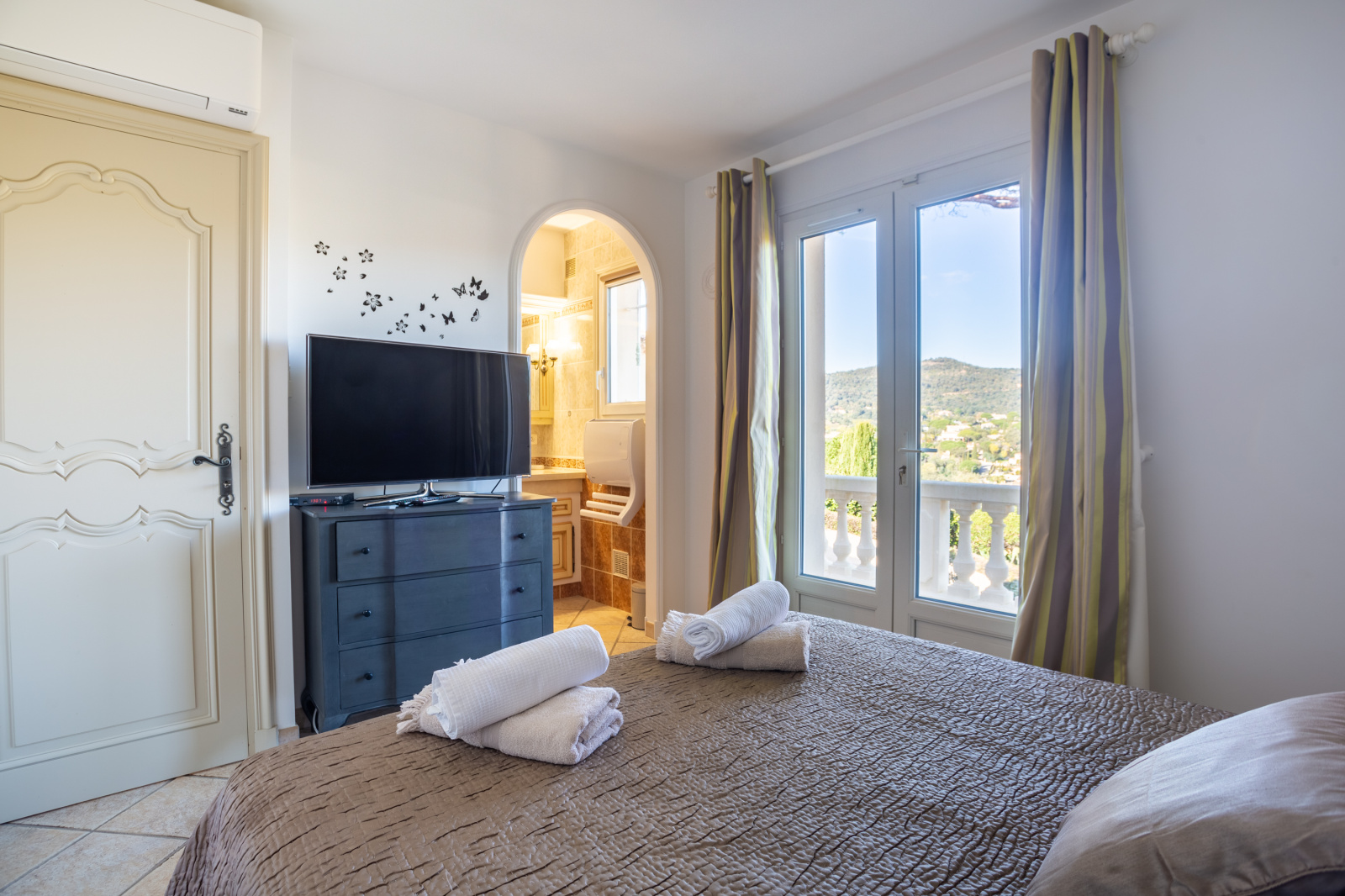 Dotée d'un vaste séjour salle à manger cheminée et d'une cuisine indépendante équipée, elle comprend aussi en rez de piscine 2 chambres avec leur salle d'eau,toilettes, à l'étage une suite parentale avec salle de bains et salle de douche ,magnifique dressing, toilettes, ainsi qu'un très beau solarium avec aperçu mer. en rez de jardin ,deux autres chambres avec salle de bain et salle de douche, toilettes, salon jeux , cave;